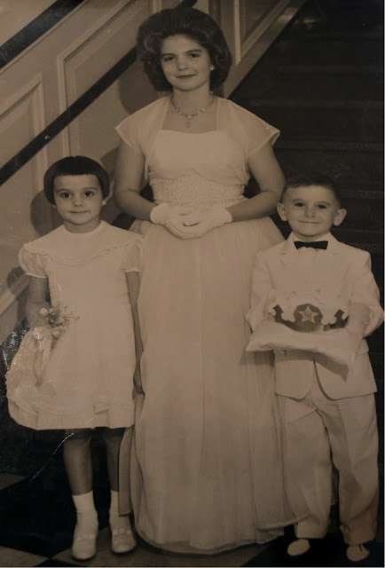 Anyway, I was to be the flower girl and George was to be the crown bearer.